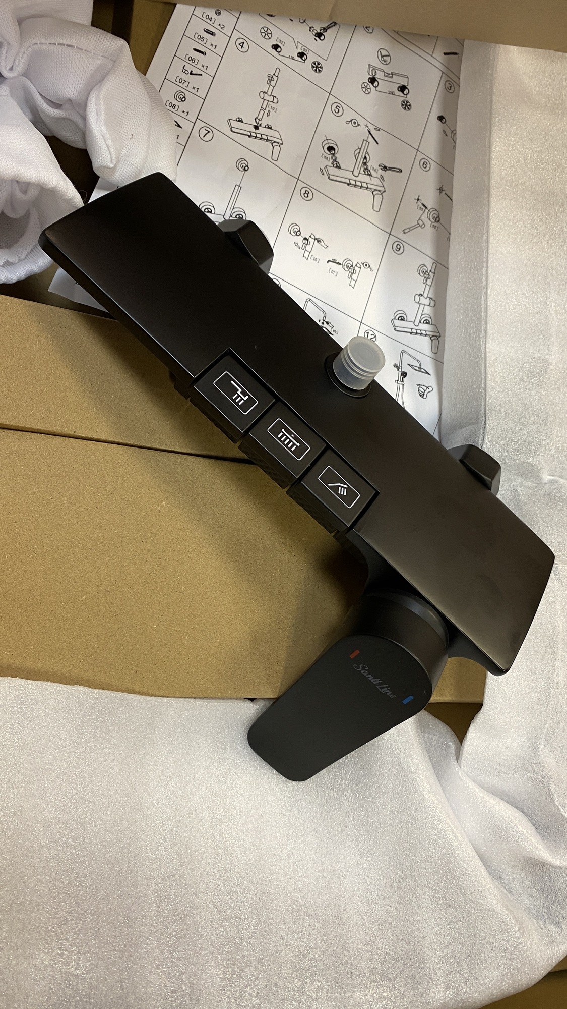 Душевая стойка, чёрная матовая, верхний душ диаметр 250мм