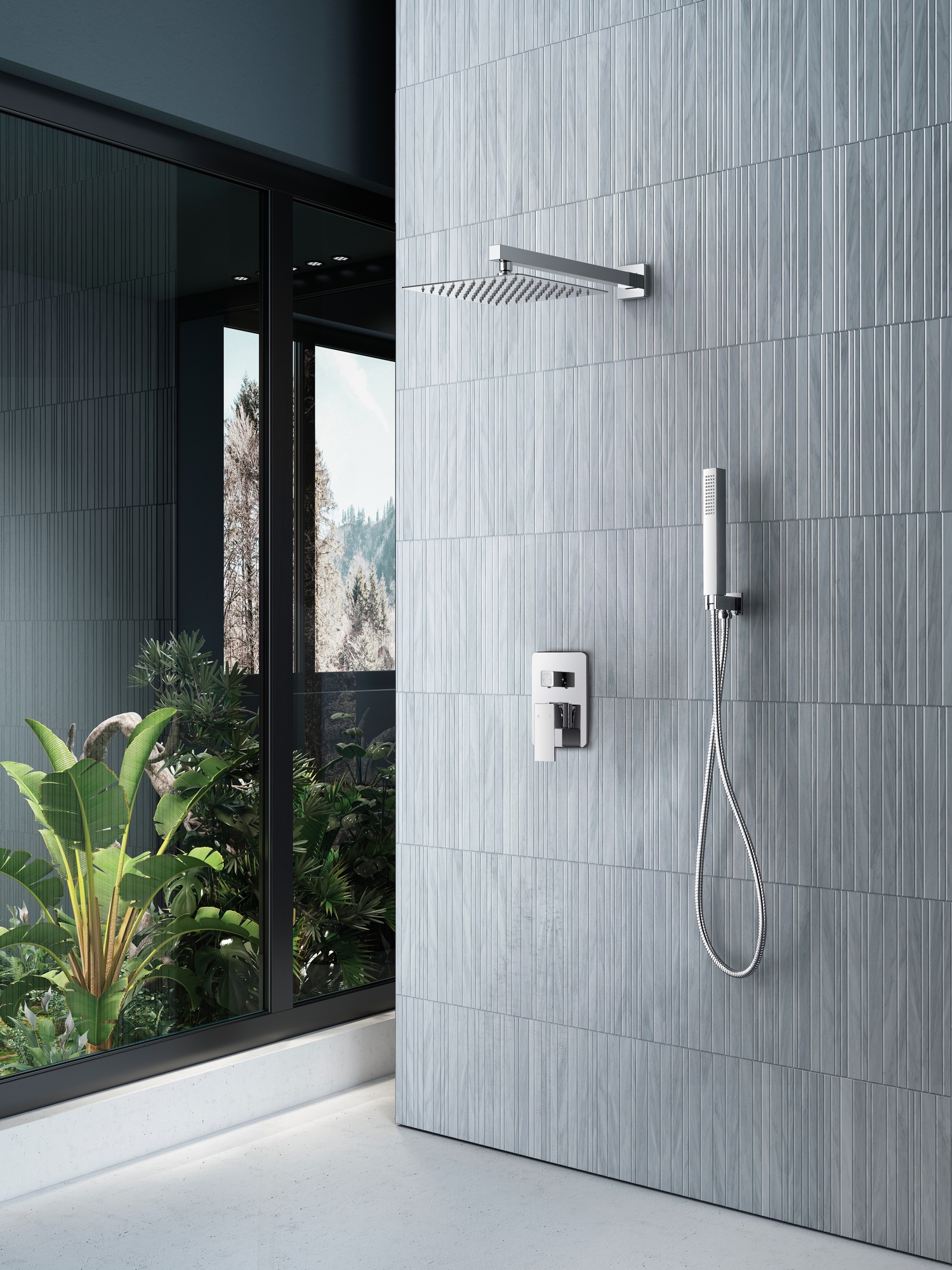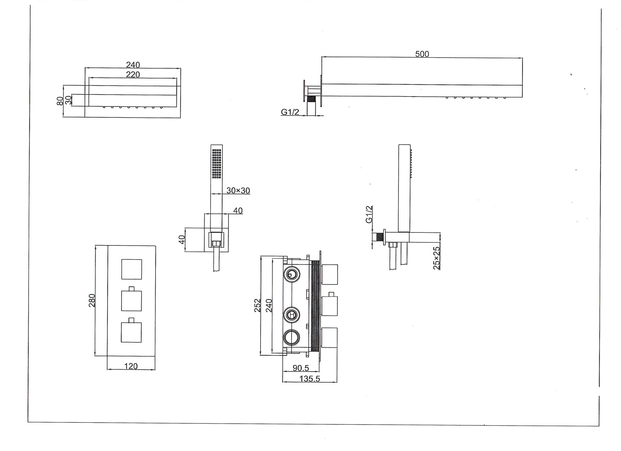 Главная Продукция ДУШЕВАЯ ПРОГРАММА Душевой комплект скрытого монтажа с термостатом, хромированный, верхний душ размер 500 х 220 х 30мм