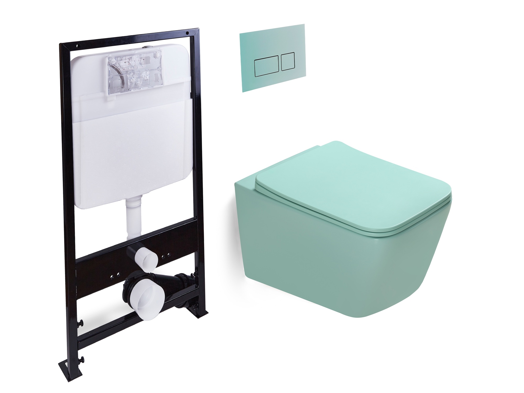 Комплект! унитаз подвесной,система смыва Tornado + исталляция с кнопкой (светло-зелёный матовый)