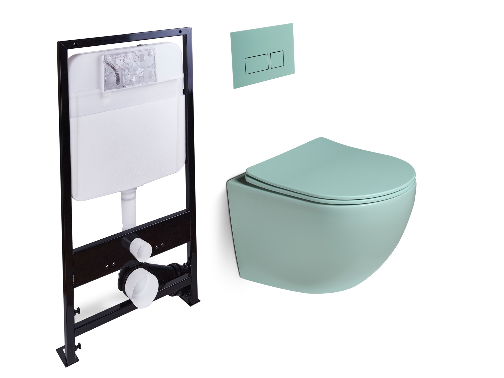 Комплект! унитаз подвесной,система смыва Tornado + исталляция с кнопкой (светло-зелёный матовый)