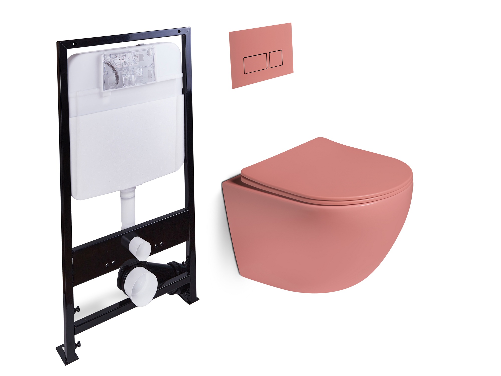 Комплект! унитаз подвесной,система смыва Tornado + исталляция с кнопкой (персиковый матовый)