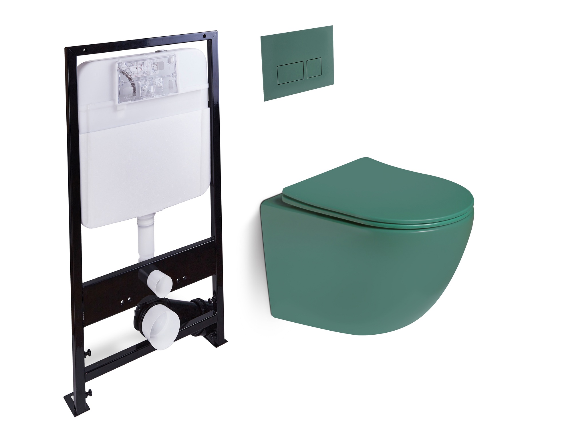 Комплект! унитаз подвесной,система смыва Tornado + исталляция с кнопкой (зелёный матовый)