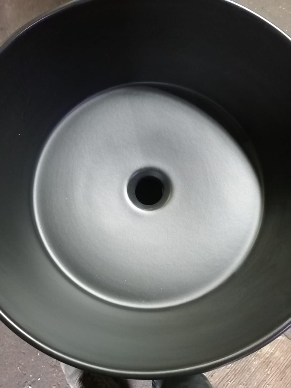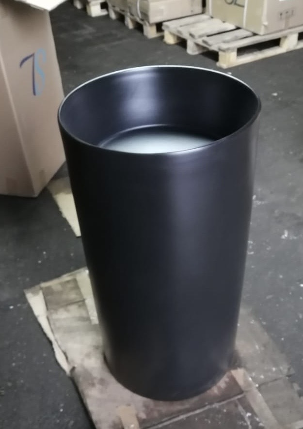 Главная Продукция РАКОВИНЫ Раковины напольные Раковина керамическая напольная (моноблок) чёрная матовая без отверстия под смеситель.