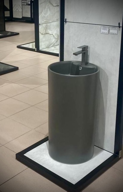 Главная Продукция РАКОВИНЫ Раковины напольные Раковина керамическая напольная (моноблок) серая матовая
