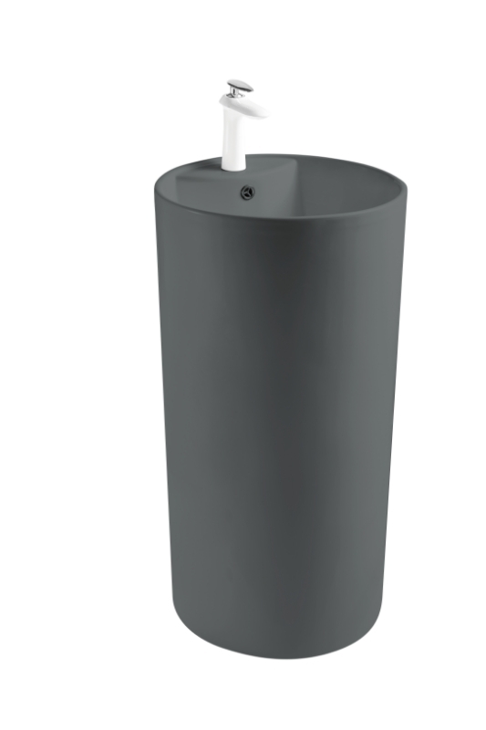 Раковина керамическая напольная (моноблок) серая матовая
