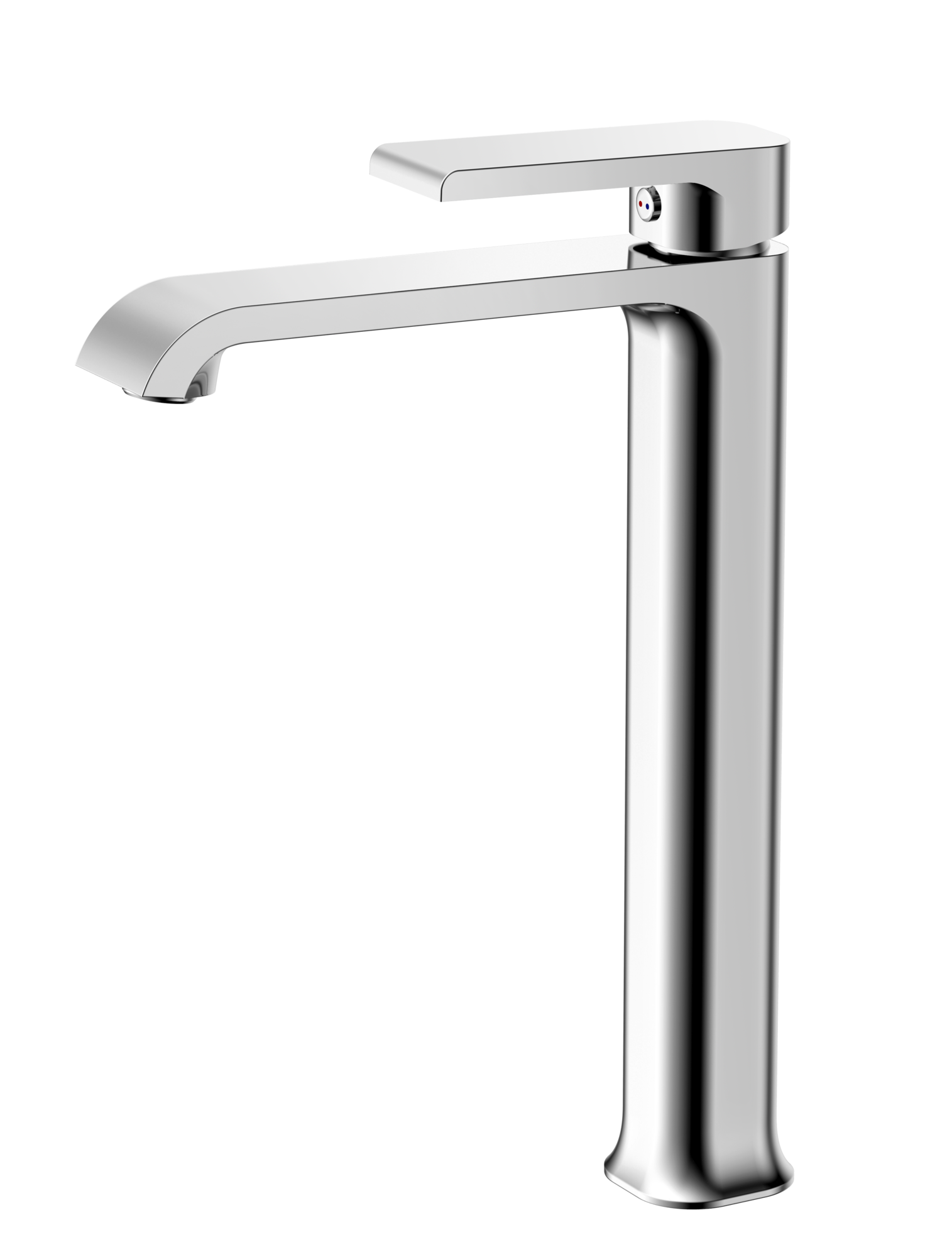 Главная Продукция СМЕСИТЕЛИ Cмеситель для раковины с высоким корпусом, хромированный, материал латунь, картридж: wanhai, аэратор: Neoperl, подводка длиной 35 см с крепежным комплектом и хромированным кольцом-основанием.