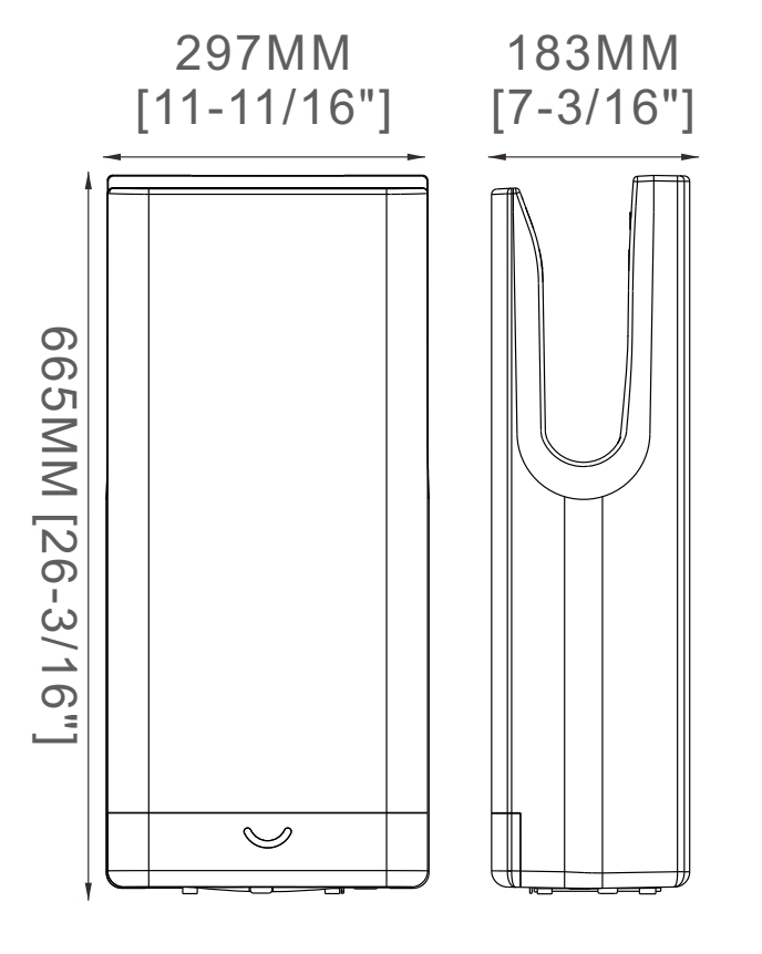 Сушилка для рук.Напряжение: 230/50 Гц, 9A, 1650 Вт Температура воздуха: 40 ℃ Скорость воздуха: 85-100 М / с Уровень защиты: IP23 Электрическая изоляция: КЛАСС Ⅱ Цвет: Черный матовый Размер: W297 × D195 × H671 мм Материал: ABS пластик Двигатель: Двигатель щетки [1] Ультрафиолетовый индикатор на выходном патрубке [2] Фильтр крупных частиц и HEPA [3] Возможность переключения подачи горячего/ холодного воздуха [4] Синий светодиод в сушильной камере