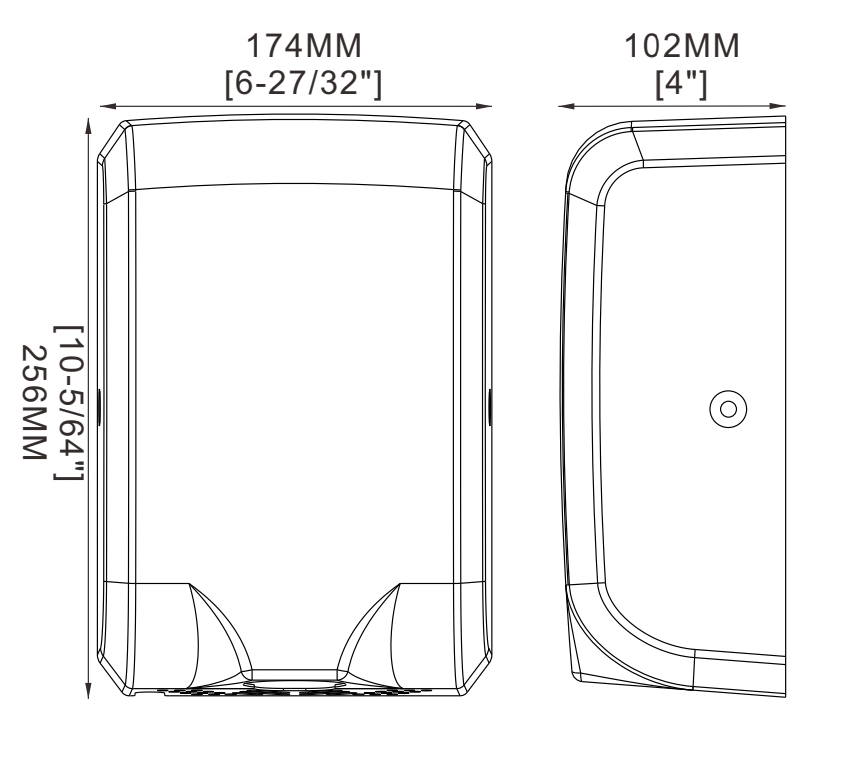 Сушилка для рук. Напряжение: 230 В / 50 Гц, 3A, 700 Вт Температура воздуха: 40 ℃ Скорость воздуха: 100 М / с Уровень защиты: IP23 Электрическая изоляция: Класс защитыⅠ Покрытие: матовое Размер: W174 × D100 × H256 мм Материал: Нержавеющая сталь 304 Двигатель: Щеточный двигатель, 28000 об/мин [1] Ультрафиолетовая лампа на выходном патрубке [2] Фильтр грубой очистки [3] Возможность подачи горячего/холодного воздуха
