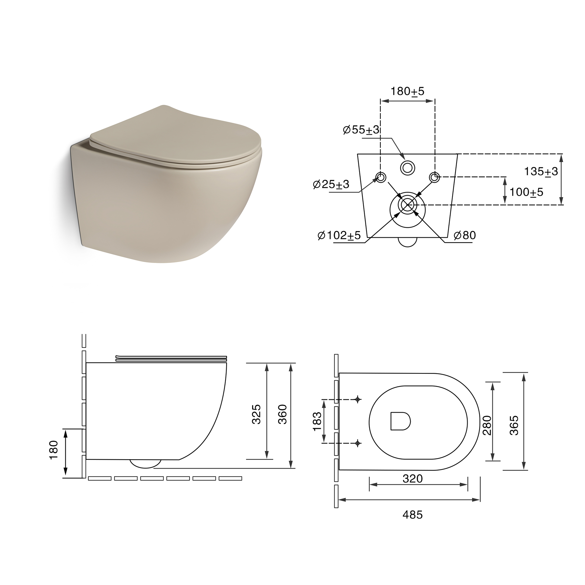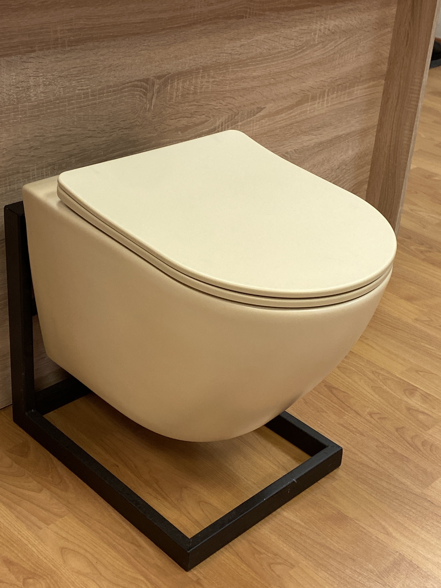 Главная Продукция УНИТАЗЫ Унитазы цветные Унитаз подвесной, безободковый,система смыва Tornado (бежевый матовый)