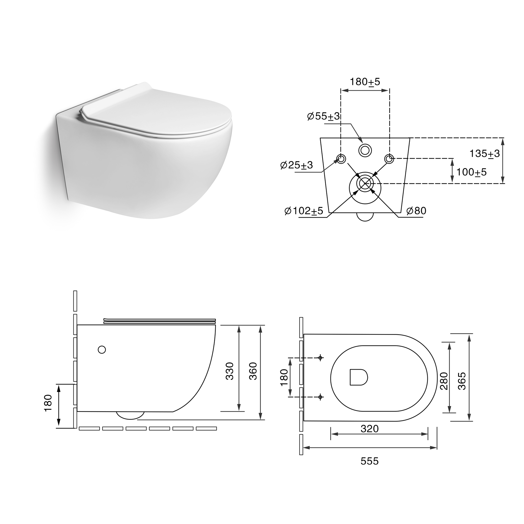 Унитаз подвесной, безободковый, система смыва Tornado (матовый под мрамор)