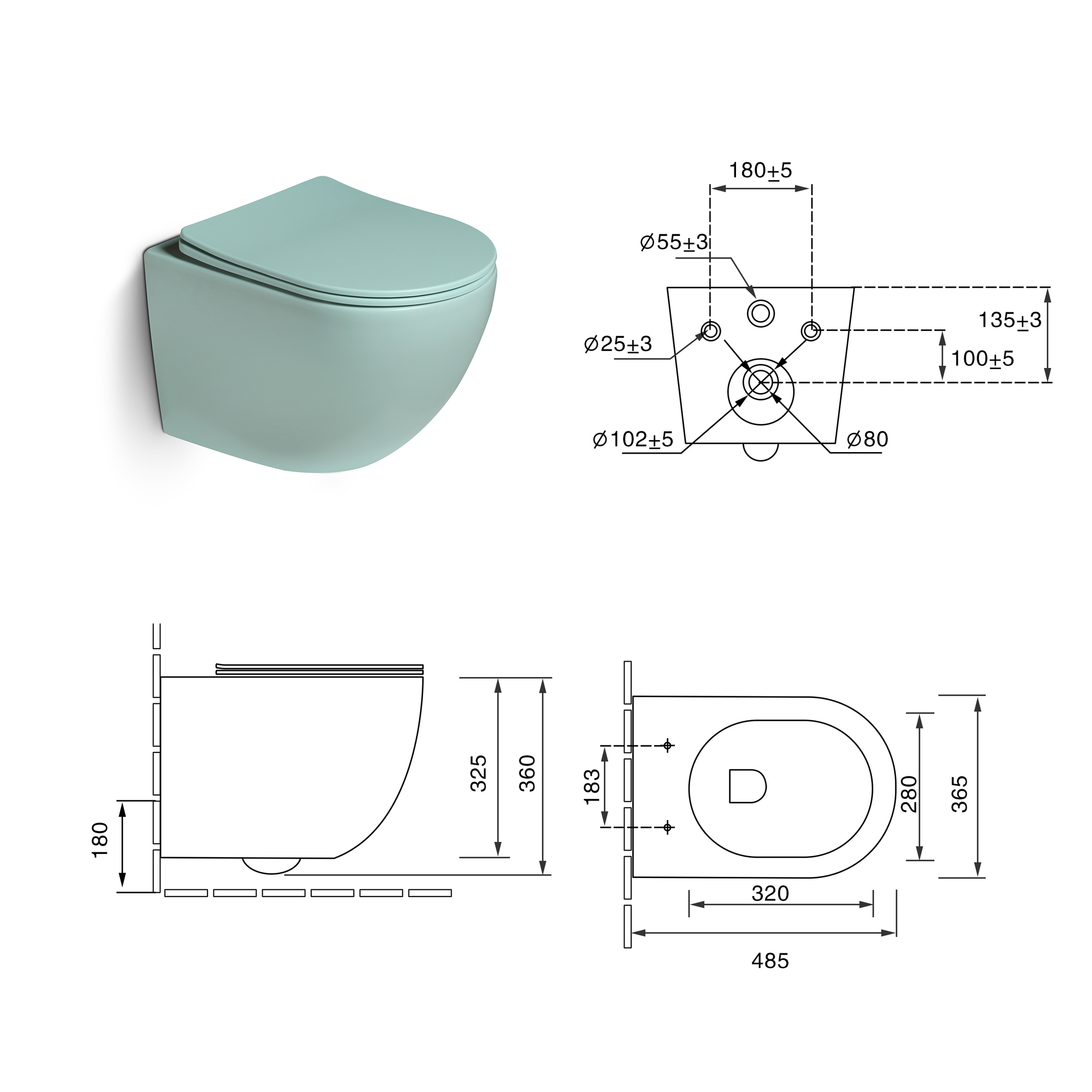 Главная Продукция УНИТАЗЫ Унитазы цветные Унитаз подвесной, безободковый, система смыва Tornado (светло-зелёный матовый)