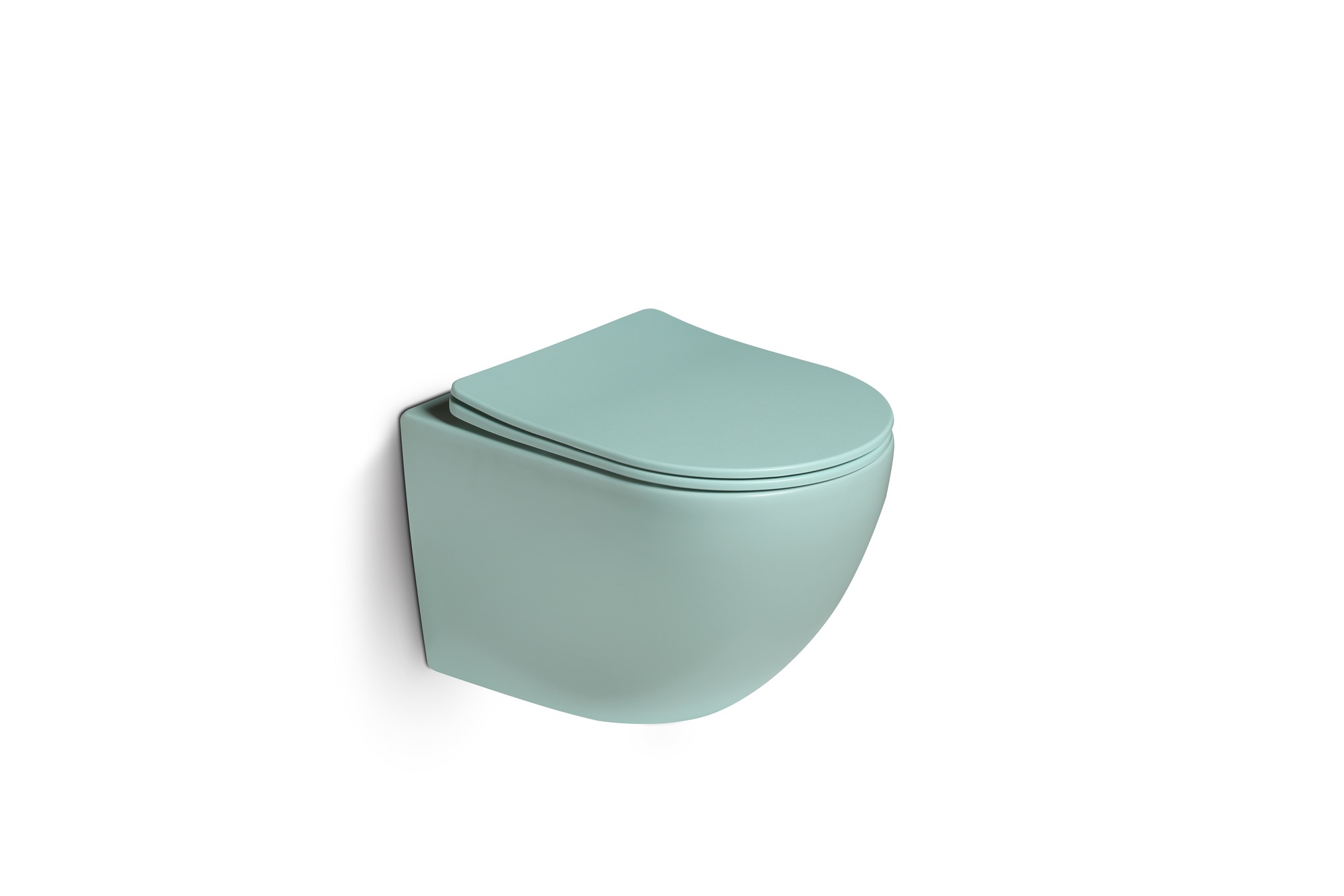 Унитаз подвесной, безободковый, система смыва Tornado (светло-зелёный матовый)