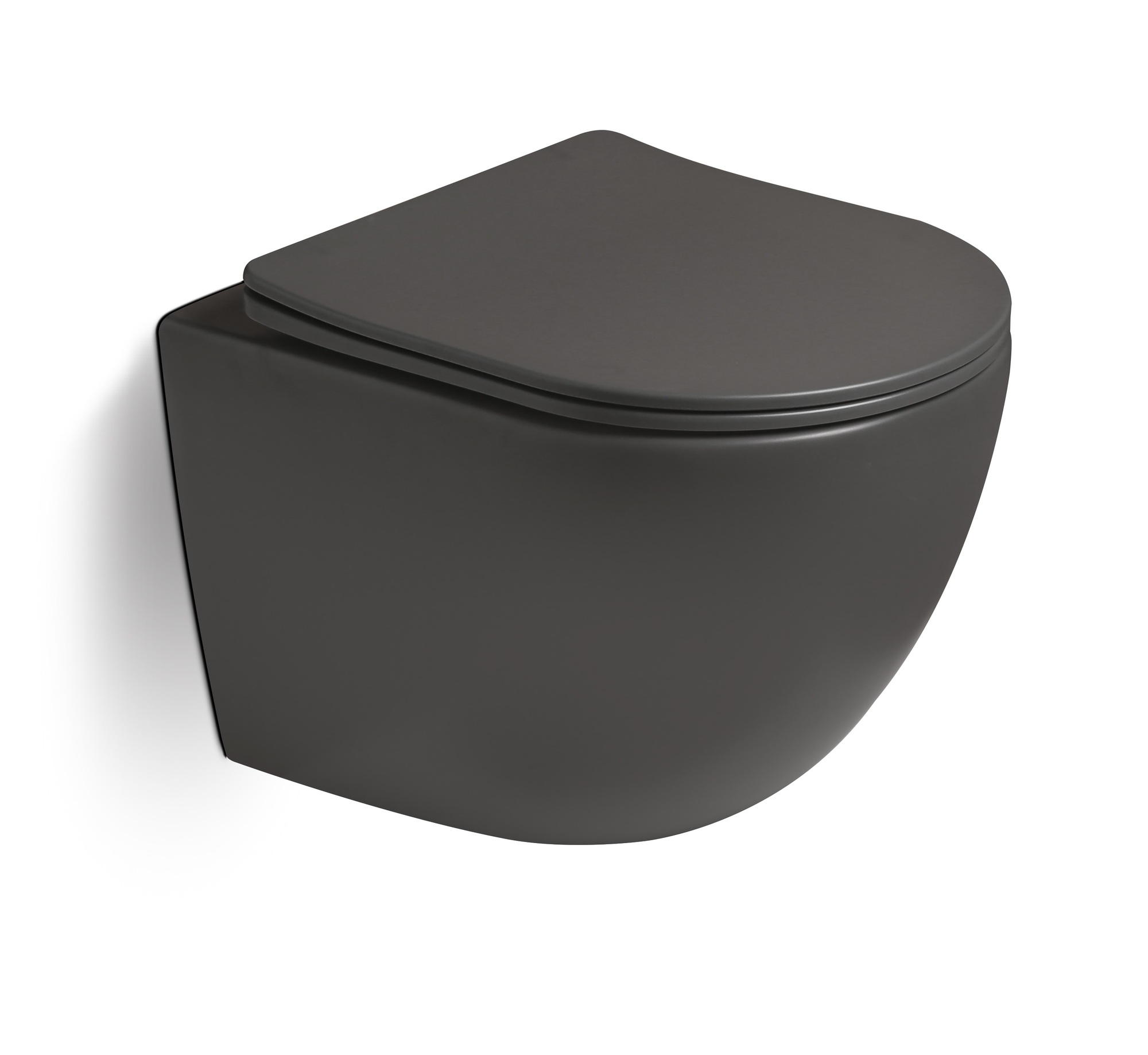 Главная Продукция УНИТАЗЫ Унитазы цветные Унитаз подвесной, безободковый, система смыва Tornado (тёмно-серый матовый