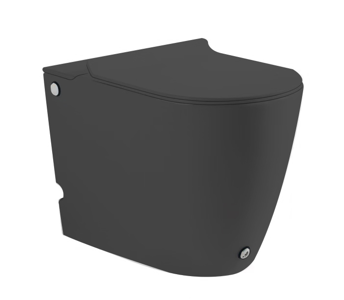 Унитаз напольный, приставной (чёрный матовый) с импульсной системой смыва, безободковый, (сиденье микролифт).