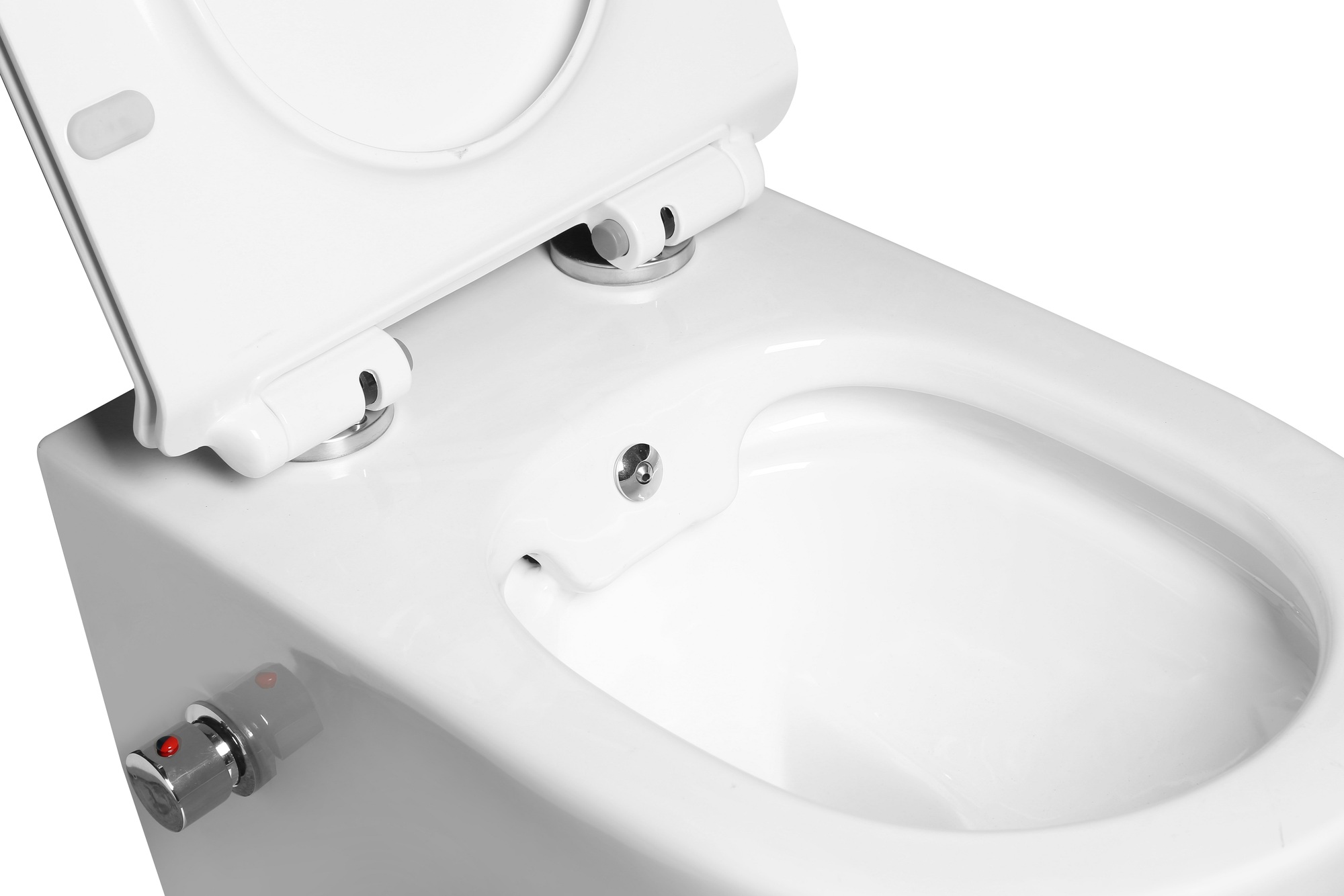 Унитаз подвесной безободковый, система смыва Tornado с встроенным смесителем и функцией биде
