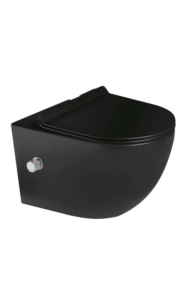 Унитаз подвесной безободковый, система смыва Tornado с встроенным смесителем и функцией биде (чёрный матовый)