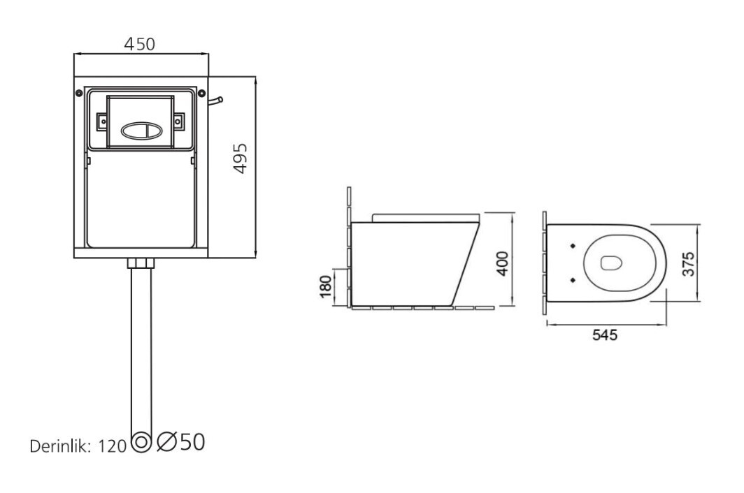 Главная Продукция УНИТАЗЫ Унитазы приставные Унитаз приставной, безободковый (сиденье микролифт) + Смывной бачок скрытого монтажа с кнопкой (хром овал)