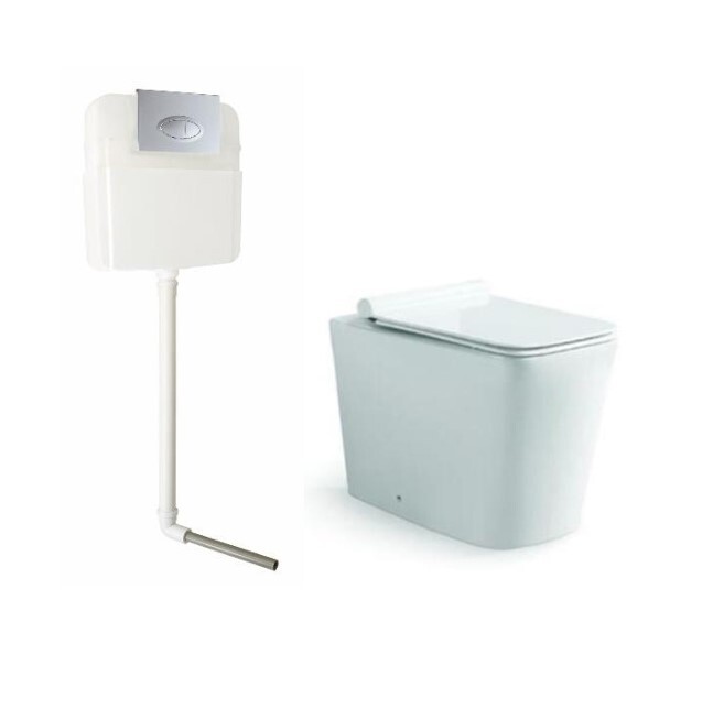 Главная Продукция УНИТАЗЫ Унитазы приставные Унитаз приставной, безободковый (сиденье микролифт) + Смывной бачок скрытого монтажа с кнопкой (хром квадрат)