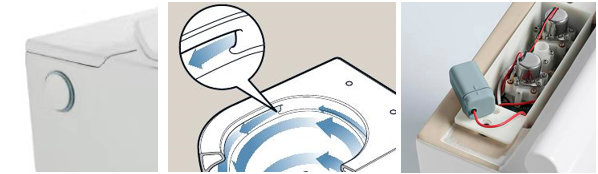 Для смыва нужно просто нажать на кнопку или на рычаг. Поток воды – сильнее обычного, работает по принципу торнадо, качественно унося содержимое в канализацию. И на все это нужно 4 литра воды! Это на 33% меньше, чем при традиционном смыве. Для работы механизма используются четыре батарейки АА, которых хватает на год или на 10 тысяч нажатий.